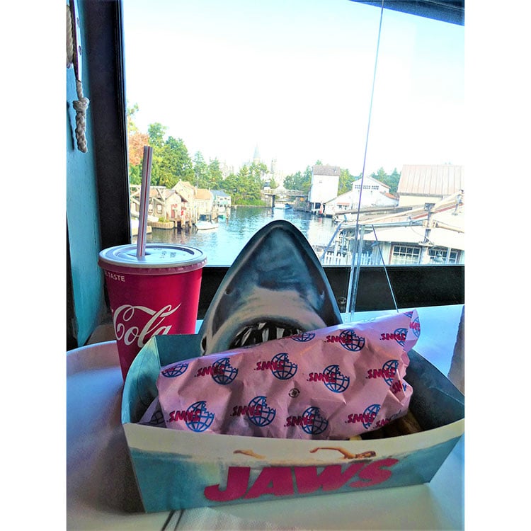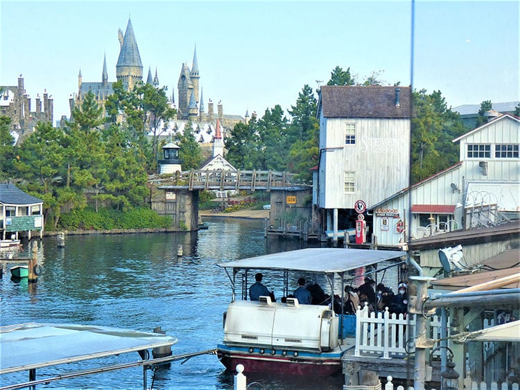 店内の窓側席では、JAWSの船乗り場が見え、その先には、ハリーポッターエリアも見えますよ。
