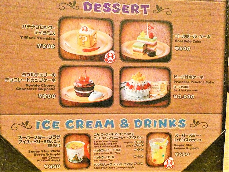 ・ハテナブロック・ティラミス¥800 ・ゴールポール・ケーキ - ¥800 ・ダブルチェリーのチョコレートカップケーキ - ¥800 ・ピーチ姫のケーキ¥3,000