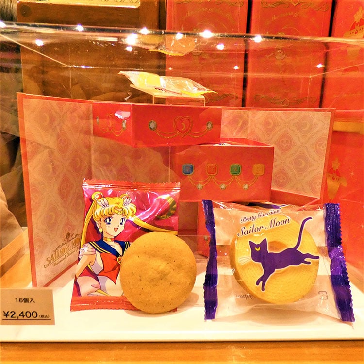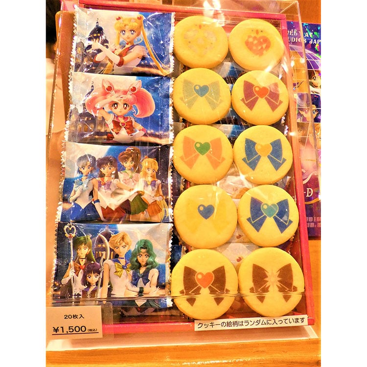 コズミックハートコンパクトやセーラー戦士のリボンがデザインされたクッキーはおみやげにもぴったりです。