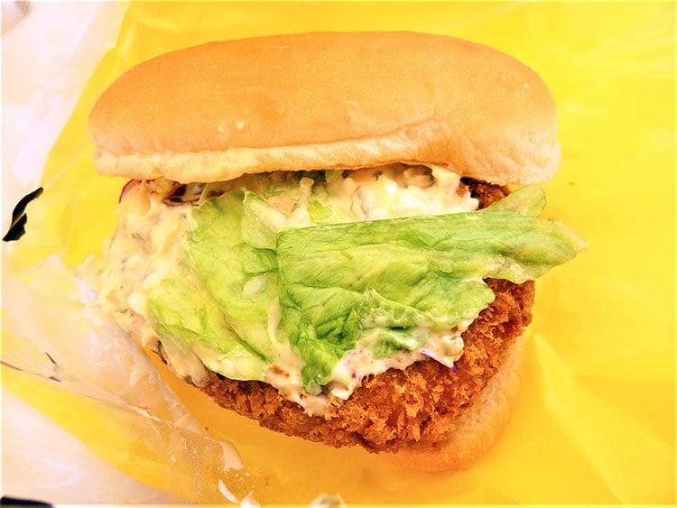 エビかつバーガーは、外は、サクサク中は、ぷりぷりの海老が入っていてたっぷりのタルタルソースがかかっていて食べ応えありのサンドでした!!