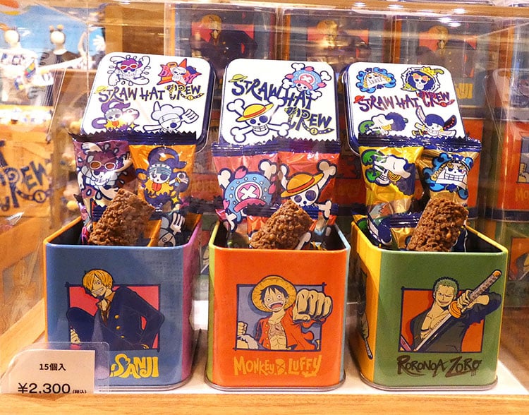 クランチチョコが、ルフィ・サンジ・ゾロの缶に入っています。