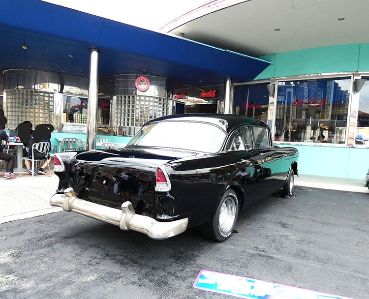 メルズドライブインは、お店の外にアメ車が停まっていますが、今はハロウィーン期間中の為車の数は少なめです。
