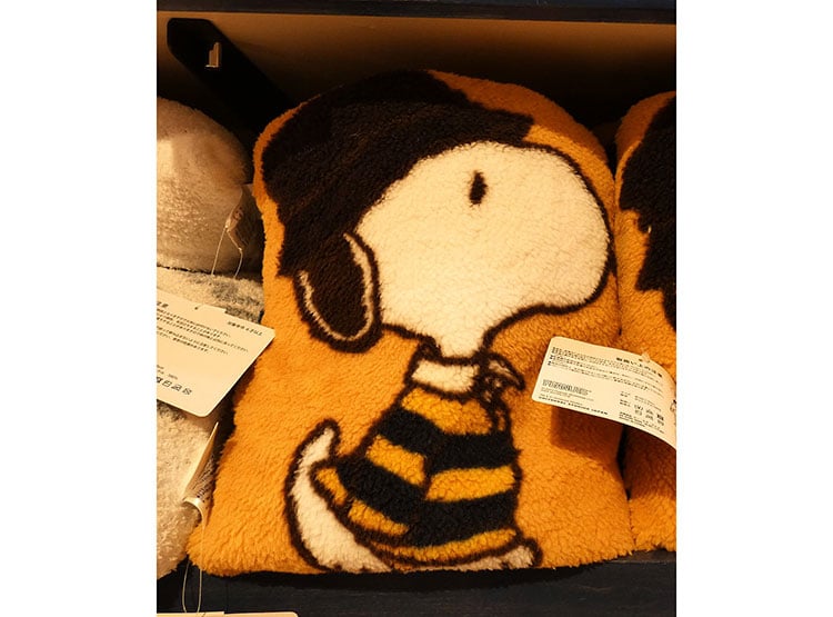 折りたためば、かわいいスヌーピーフェイスのクッションに早変わりします。