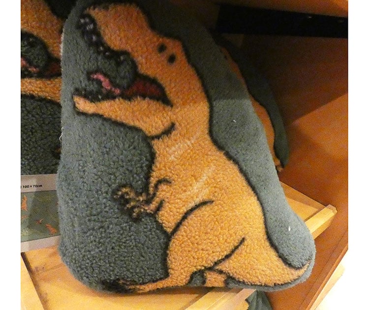 ゆるっとした表情の恐竜に癒される、ボア生地のあったかブランケットです。