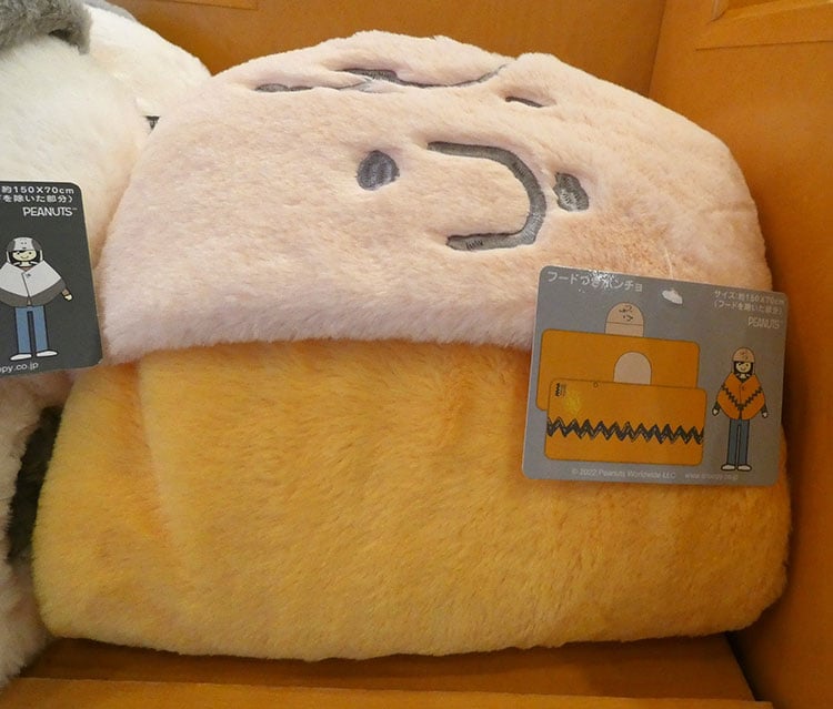 かぶればチャーリー・ブラウンに!手触りが良い、ふわふわ生地のフード付きポンチョです。