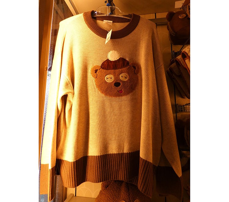 冬のマストアイテム、ニットにかわいいティムのアップリケが付いています。