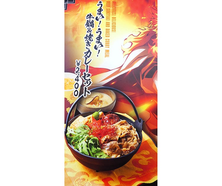 煉獄の名台詞「うまい!」を生んだあの牛鍋弁当と、大正時代に流行したカレーをドリア風にアレンジして組み合わせです。