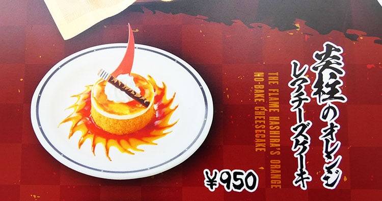 炎柄をまとったオレンジレアチーズケーキの上には、日輪刀をトッピング。
