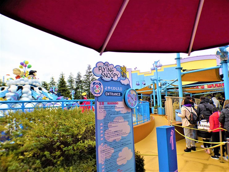 その時間にフライング・スヌーピーに行ってみると、よやくのりの列には誰も並んでおらず待ち時間ゼロ!!