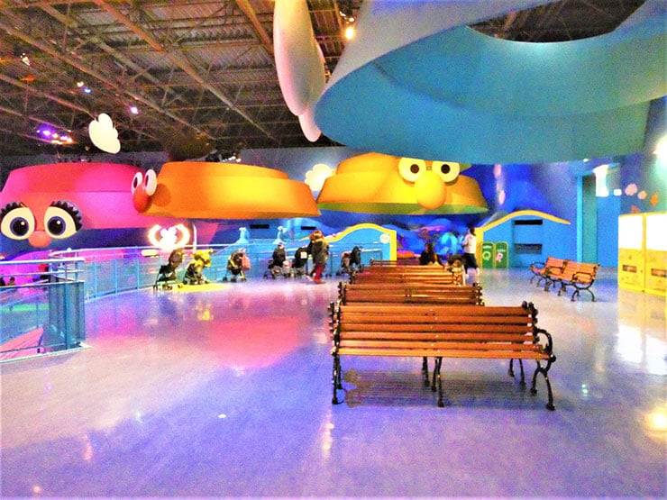 ユニバーサル・ワンダーランドの一番奥にあるエルモのイマジネーションプレイランドは、天気を気にせず子供が夢中で遊べる屋内型プレイランド・家族で使えるファミリートイレもあり子連れに嬉しい遊び場です。
