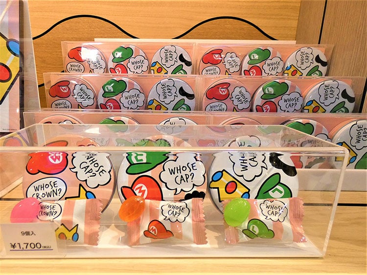 それぞれのカラーやアイコンをモチーフにデザインしたここだけのかわいいマリオ・グッズが販売されています。
