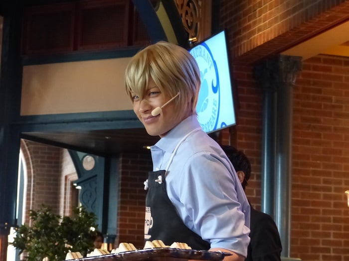 キャストさん演じるキャラクター達は、見た目のコスチュームはもちろん、言葉遣いやしぐさまでリアルに再現されます。声はホンモノの声優さんの声の時と、キャストさんの地声(でも、そっくり!)の時があります。ピンマイクを付けているキャラはキャストさんの地声です。