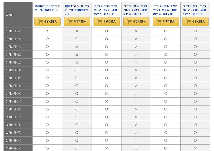 12月25日現在では、クールジャパンイベント初日の1月21日(火)は、すでにペア専用チケットは完売していて、通常チケットも残りわずか「△」になっています。