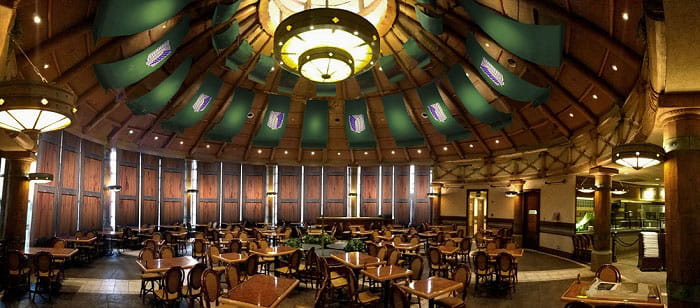 普段はこんな感じのロストワールド・レストラン。全面がガラス張りになっていて、南国風の開放的な内装のレストランです。