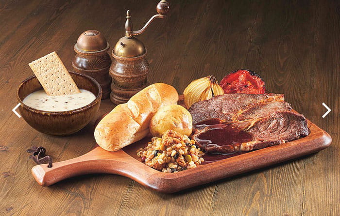 食事メニューである、「調査兵団プレート」はビーフステーキ(画像)、グリルチキン、ローストポークの全部で3種類です。