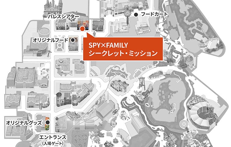 スパイファミリーのミッション専用冊子「極秘任務指令書」(無料の整理券)は、当日パーク内のパレスシアターで入手することができます。